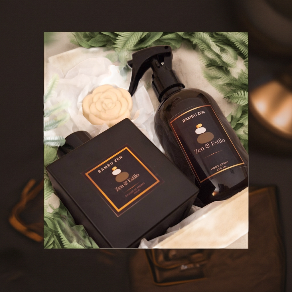- Difusor de Varetas (250ml): Libera gradualmente o aroma suave e harmonioso do bambu, mantendo o espaço com uma fragrância constante e delicada.